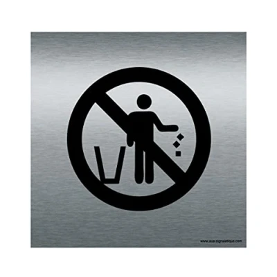 AUA SIGNALETIQUE Plaque Alu Brossé Ne pas jeter vos papiers par terre 130x130 mm