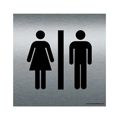 AUA SIGNALETIQUE Plaque Alu Brossé Toilettes hommes/femmes 130x130 mm