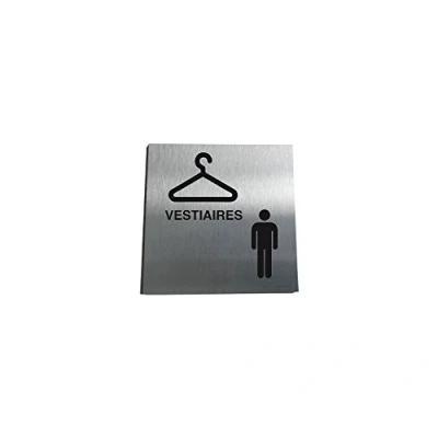AUA SIGNALETIQUE Plaque Alu Brossé Vestiaires Hommes, Picto 130x130 mm