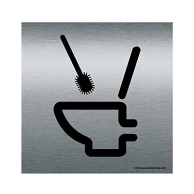 AUA SIGNALETIQUE Plaque Aluminium Brossé Cuvette et Brosse 130x130 mm