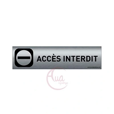 AUA SIGNALETIQUE Plaque Aluminium brossé imprimé AluSign DARK 200x50 mm Double Face adhésif au dos (Accès interdit)