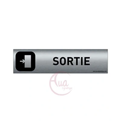 Digital UV print on brushed aluminium (no lamination) in QUADRI. Eco solvent Dimensions: 200 x 50 mm – Standing, sober, UV print finish Material: brushed aluminium DIBOND - Thickness: 3 mm - Silver Double-sided adhesive on the back: Yes - apply to smooth and clean walls Made in France. AUA SIGNALETIQUE