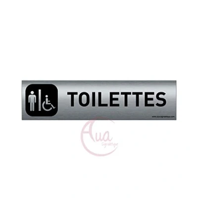 AUA SIGNALETIQUE Plaque Aluminium brossé imprimé AluSign DARK 200x50 mm Double Face adhésif au dos (Toilettes H/handicap)