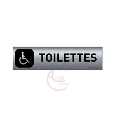 AUA SIGNALETIQUE Plaque Aluminium brossé imprimé AluSign DARK 200x50 mm Double Face adhésif au dos (Toilettes handicapés)