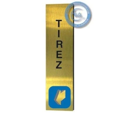 AUA SIGNALETIQUE Plaque de porte Aluminium brossé doré Poussez Vertical 200x50 mm