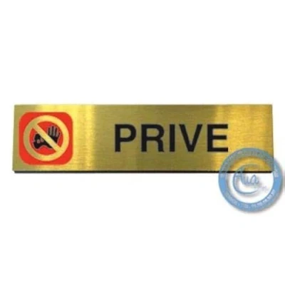 AUA SIGNALETIQUE Plaque de porte Aluminium brossé doré Privè 200x50 mm