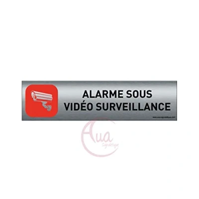 AUA SIGNALETIQUE Plaque de porte Aluminium brossé imprimé AluSign 200x50 mm Double Face adhésif au dos (Alarme sous vidéo)