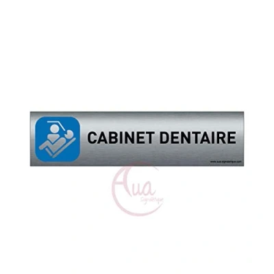 AUA SIGNALETIQUE Plaque de porte Aluminium brossé imprimé AluSign 200x50 mm Double Face adhésif au dos Impression UV directement sur l'aluminium (Pas contre collage) (Cabinet dentaire)