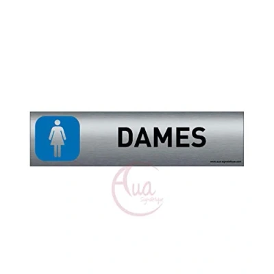 AUA SIGNALETIQUE Plaque de porte Aluminium brossé imprimé AluSign 200x50 mm Double Face adhésif au dos Impression UV directement sur l'aluminium (Pas contre collage) (Dames)