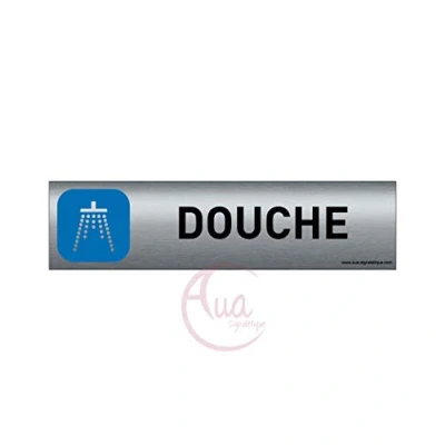 AUA SIGNALETIQUE Plaque de porte Aluminium brossé imprimé AluSign 200x50 mm Double Face adhésif au dos Impression UV directement sur l'aluminium (Pas contre collage) (Douche)