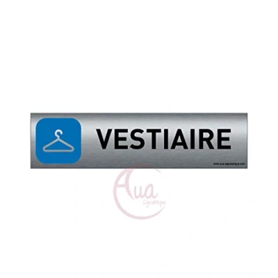 AUA SIGNALETIQUE Plaque de porte Aluminium brossé imprimé AluSign 200x50 mm Double Face adhésif au dos Impression UV directement sur l'aluminium (Pas contre collage) (Vestiaire)
