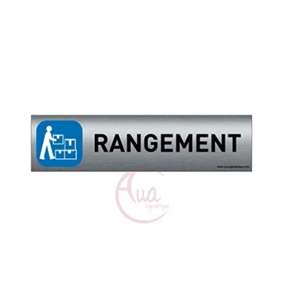 AUA SIGNALETIQUE Plaque de porte Aluminium brossé imprimé AluSign 200x50 mm Double Face adhésif au dos Impression UV directement sur l'aluminium (Pas contre collage) (Rangement)