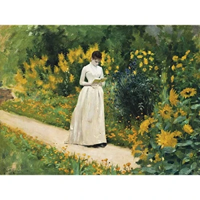 Aublet Kunstdruck auf Leinwand, Motiv Gartenweg Gemälde, gelb/grün, großer