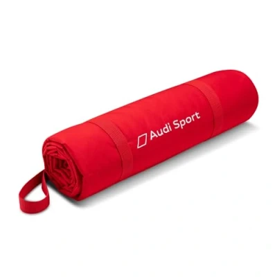 Picnic blanket in red with black backing Quilted Audi Sport diamond motif and embroidered Audi Sport logo, water-repellent coating, practical carrying strap Dimensions: 130 x 170 cm (unrolled), 45 x 12 cm (rolled up) Material: outer material: 100% polyester, water and dirt repellent. Back: 100% polyester, 145 g Oxford, with waterproof PU coating. Filling: 100% polyester, wadding. Colour: red Audi part number: 3292400100