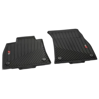 PREMIUM PROTECTION: Durable car floor mats for reliable protection against moisture and dirt. PERFECT FIT: The mats have been precisely adapted to the floor dimensions of the Audi e-tron S and SQ8 e-tron. STYLISH DESIGN: Featuring a contrasting Audi S logo, adding an elegant touch to your vehicle interior. Secure attachment: attachment system at the designated floor points and special nubs to prevent slipping. EASY CARE: Made of high quality plastic, durable and easy to clean.