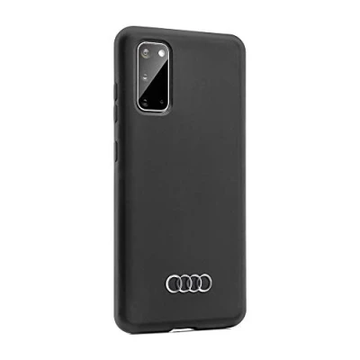 Audi silicone case with soft touch surface With emblem of the Audi rings Microfibre cover on the inside Compatible with Samsung S20 Colour: black