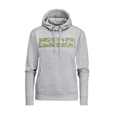 AmazonAudiQuattro women's hoodie in light grey with lined hood and high stand-up collar Hood cord with silicone cuffs; ribbed cuffs on sleeves and hem Avocado contrast band along the kangaroo pocket and neck Material: 64% Cotton, 36% Polyester Colour: light grey