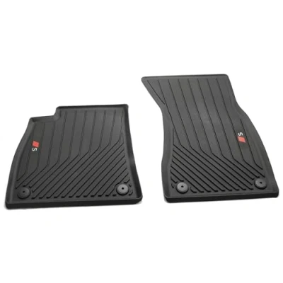 ORIGINAL ACCESSORIES: Set of two Audi rubber front floor mats, perfectly matched for the A5/S5 (B10 FU) from 2024. PRECISE FIT: Area rugs made of TPE with 20% recycled material content, attached with press studs on the floor. SPORT DESIGN: Featuring distinctive diamond pattern and S logo in contrasting color, highlighting the sporty character. PRACTICAL PROTECTION: Durable floor mats protect the interior from moisture and dirt, easy to clean and maintain. SAFETY OF USE: The special nubs on the bottom and the fixing system prevent the mats from sliding while driving.