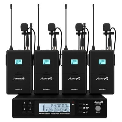 Audibax AWM 402 Wireless Lavalier Microphone System 4 Channel UHF Mini XLR Connector