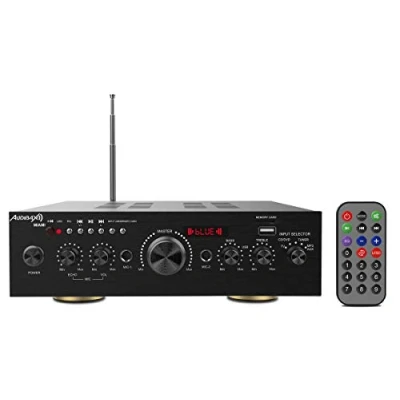 Bluetooth Extender This Audibax HiFi Amplifier with Bluetooth Receiver is the ideal audio amplifier to create a true multimedia system and enjoy music wirelessly via your smartphone or tablet. MULTIFUNCTIONAL DISPLAY With its useful LCD display, you can see how the mode is activated on your HiFi amplifier at any time and at a glance. In addition to easy operation, separate controls for volume control, bass and treble are included, allowing you to adjust the sound as you like. POWERFUL SYSTEM It is a stereo HiFi amplifier with a total of 200W power, 100W per 2 channels. Meet all your needs to create a multimedia system in your home that allows you to amplify the sound of the sound system you need. USB Port/Micro SD and More: This amplifier has a USB/SD input that allows you to play it with an MP3 or connect to the computer. It is as easy as inserting an SD card or USB stick for direct music playback. There are also 2 ports for microphones that enhance your sound. Remote control: you can control the amplifier remotely with the remote control. You can change the selected volume, aux connection system, audio track change, playback order, etc. from each point.