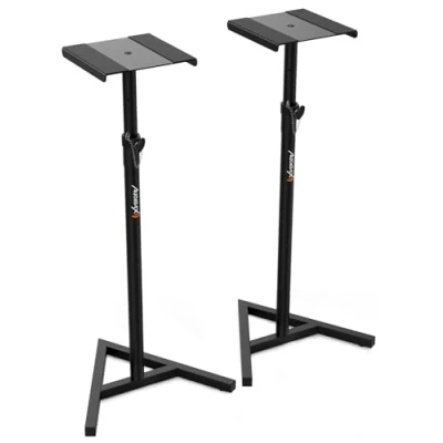 Studio monitor stand: with the studio monitor or speaker stand from Audibax you can better organise your tasks as it helps you keep your desk free during work. With this monitor stand, you can enjoy the best sound. It supports your speakers or screens on a stable base and adjusts them to the desired height. Good stability: the sturdy steel frame and the triangular base of this laptop stand for notebooks up to 20 kg offer great safety. It has three support points with two different types of floors, a rubber and a pointed foot. It has three support points with two different types of floors, a rubber and a pointed foot. Height adjustable: the arm of this portable lifting stand is height adjustable. Height adjustable: the arm of this portable lifting stand is height adjustable. Besides, each black steel tripod weighs only 2.40 kg, making it even easier to transport if it requires the circumstances. Includes non-slip pads: the base on which the monitors lie on is reinforced with extended non-slip pads. The aim is to give the support a better fixation. These pads prevent unwanted falls or unwanted movements that could damage your studio monitors or speakers. Ideal dimensions: its compact design makes this monitor, speaker or laptop stand adaptable to your needs, as you can use it in any private or professional environment. It achieves a minimum height of 71 cm and a maximum height of 119 cm. The side of the square base measures 23 cm and the length of the triangular base is 43 cm on all sides.