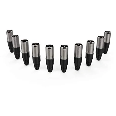 Audibax Silver XLR Male Connector Pack of 10 High Transmission Signal OFC Connectors PVC Coating Maximum Insulation Diameter 6 mm Black