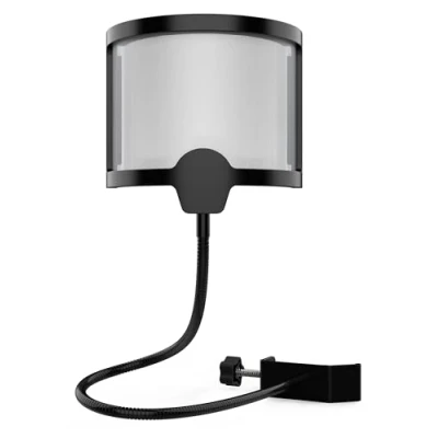 QUALITY ANTIPOP FILTER: Metal mesh combines with a plastic frame that effectively prevents saliva spray, other harmful dust and moisture, keeping microphones clean and protecting your microphone. GREAT PROTECTION: Our anti-pop filter effectively coats and reduces explosive noises, bursts, crunches, wind interference and breathing sounds during vocal recording. Absolutely necessary for recording, talking or singing. It helps you get your best vocal recordings. EASY ASSEMBLY: Convenient and quick to assemble and disassemble the microphone and attaches firmly to the microphone with the design of the combination of elastic bands and rubber ring inside, special design fits perfectly to all microphones. ADJUSTABLE NECK - The -360° flexible gooseneck clip stabilizer arm of the anti-pop filter holder helps to make the change at any angle for your needs, to stay in the position without movements. WIDE APPLICATION ANTIPOP FILTER: This microphone filter can be used in recording rooms, stages, streaming rooms, internet bars, chat rooms and other places. It will give your studio a modern and exclusive look while making your recordings better.