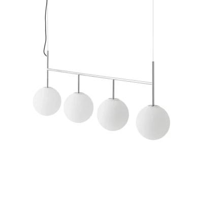 Lights.coTR Bulb pendant light with four opal glass light sources The TR Bulb Suspension Frame LED pendant light impresses with its minimalist look and classic colour scheme. The metal frame is made of polished steel and is elongated. Four high-quality opal glass light sources are attached to it in a row. The lampshade is a real all-rounder because, made of high-quality opal glass, it also serves as a diffuser, ensuring pleasant and glare-free light distribution. Rundle's vision was to create a clever, versatile lighting concept that adapts to this modern lifestyle. The light source should be able to be attached to different lights while emphasising design and ambience. The result is the elegant, minimalist appearance of the TR Bulb series, which can be integrated into almost any modern interior.