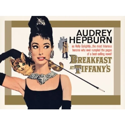 Audrey Hepburn "Breakfast at Tiffany's Gold One Sheet Canvas Print, Multi Colour, 60 x 80 cm