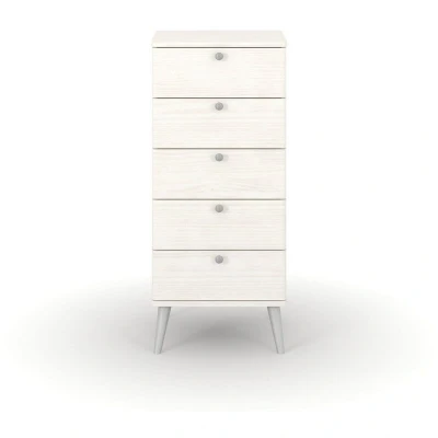 Augusta Curve 5 Drawer Narrow Chest Pine/Plastic L39.5 x W45 H90.3 cm White/Silver Flat Packed