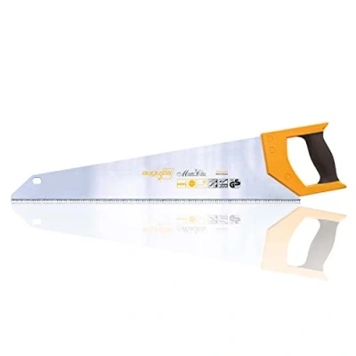 MULTI-PURPOSE SAW: Our multi-purpose foxtail saw is perfect for processing worktops and chipboard, coarse and fine-grained wood panels, e.g. for interior fittings, and for processing thin PVC. HIGH QUALITY: The 2-component soft grip, the C75 band steel saw blade and the powerful push serration make our hand saw a high-quality helper for fine woodworking. UNIVERSAL PUSH TOOTH: Our powerful push toothing with 2-3 teeth per centimetre, a blade hardness of 46 HRC and a tooth tip hardness of 63 HRC enables fine and fast cuts with little effort. ERGONOMIC HANDLE: The ergonomically shaped 2-component soft handle supports correct handling of the saw and provides a secure grip for fatigue-free work. The saw has a 90° and 45° stop for marking. MADE IN GERMANY: Over 100 years of tradition and innovation combined with production in Germany - that means tool effectiveness and quality wherever wood is cut!, Weight: 1.0582188576 Pounds, Manufacturer: Augusta