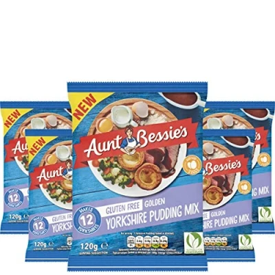 YORKSHIRE PUDDING: Create golden, crispy Yorkshire puddings with ease. Perfect every time with minimal effort, this Yorkshire pudding batter mix is a staple for any food cupboard GLUTEN FREE: A gluten free alternative to the classic Sunday roast must have. Experience the same delicious taste - now gluten free. They're also suitable for vegetarians PUDDING MIX: Making the best Yorkshires couldn't be easier. Simply add 2 eggs and water for the perfect mix. Don't forget to heat the oil in your tray before adding the batter 12 YORKSHIRE PUDDINGS: Each pack makes approximately 12 Yorkshire puddings and this bulk pack of 12 will ensure you can feed the family for weeks SUSTAINABLE: Aunt Bessie's recipes are as close to homemade as you can get and only ever use the best quality ingredients. Making a difference with responsibly sourced, prepared food every day