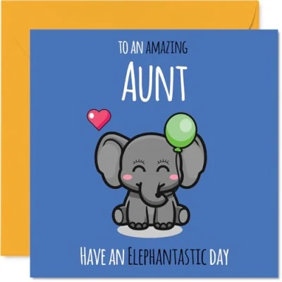 Aunt Birthday Card Have An Elephantastic Day Happy for from Nephew Niece, 145mm cute elephant Bday Greeting Cards