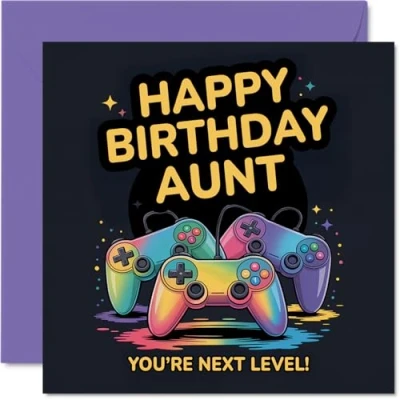 Aunt Birthday Card Youre Next Level Happy for from Nephew Niece, 145mm video game controller design Bday Greeting Cards