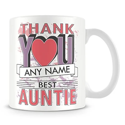 Auntie Thank You Mug Personalised Cup Gift Customise with Name Pink