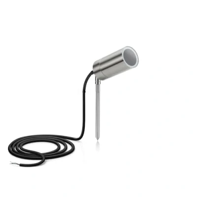 Add some class to your garden with this directional GU10 spotlight holder with included LED bulb Fully weather resistant (IP44) and complete with tempered glass and a durable stainless steel body Deep recessed so can be used to house the longer smart GU10 bulbs up to 75mm in length, such as the Auraglow AG600 or Philips Hue 1.00mm 3 core 100cm rubber outdoor flex cable fitted