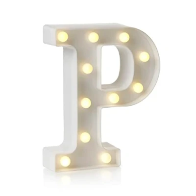 Auraglow LED Alphabet Letter & Number Light Sign Decorations, Lamp for Home Birthday Party Event, Night Lights, Battery Powered Letters And Numbers With Four Hour Timer (P)