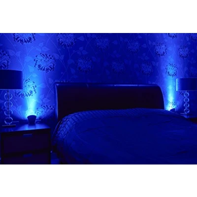 Got ugly unused plug sockets? Turn them into beautifully modern uplighters Instantly improve the design and ambiance of any room with a wash of light against your walls Just plug it in and you’ll have an uplighter – no wiring or fussing required! Each light measures 2.17 x 3.94 x 6.3 cm and weighs 105g. Rotate it, use it as a downlight, or use two in a double wall socket for a ‘V’ effect light beam Blue Auraglow Narrow Beam GU10 LED Bulb Included