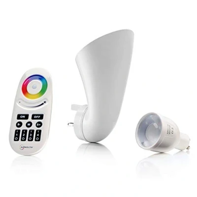 Got ugly unused plug sockets? Turn them into beautifully modern uplighters Instantly improve the design and ambiance of any room with a wash of light against your walls Just plug it in and you’ll have an uplighter – no wiring or fussing required! Each light measures 2.17 x 3.94 x 6.3 cm and weighs 105g. Rotate it, use it as a downlight, or use two in a double wall socket for a ‘V’ effect light beam Auraglow Colour Changing GU10 LED Bulb & Remote Control Included