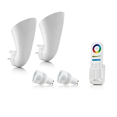 Got ugly unused plug sockets? Turn them into beautifully modern uplighters Instantly improve the design and ambiance of any room with a wash of light against your walls Just plug it in and you’ll have an uplighter – no wiring or fussing required! Rotate it, use it as a downlight, or use two in a double wall socket for a ‘V’ effect light beam Includes the Auraglow 2.4Ghz RGB CCT Smart GU10 LED Light Bulb and 8 Zone Remote - Choose from 16 million colours, or warm and daylight white from 2700K to 6500K., Manufacturer: Auraglow