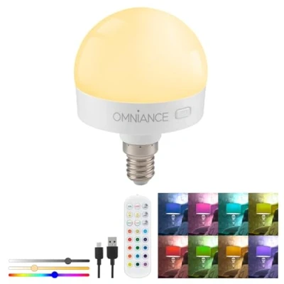 ✔ Rechargeable & Wireless LED Light – The Omniance rechargeable light source provides convenient, cordless lighting. A fast 3-hour charge delivers up to 12 to 20 hours of continuous illumination, making it an ideal lighting solution for any room. ✔ No Wiring Required – The magnetic wall sticker allows for quick and secure mounting under shelves, inside cupboards, or directly on walls. The E27, B22, and E14 adaptors convert standard lamps into wireless, battery-powered lights, allowing for flexible placement anywhere in your home. ✔ Remote-Controlled Lighting – Adjust brightness, change colours, and set timers (30/60/120 minutes) using the included remote control. Choose from warm white, daylight white, or vibrant RGB colours to match your mood and setting. ✔ Compact & Versatile – Designed for standalone use or pairing with compatible light fittings, this portable LED light source is perfect for bedside lamps, under-cabinet lighting, wardrobe illumination, or as an emergency light. Its lightweight, modern design allows for easy movement between rooms. ✔ Cordless Convenience – Perfect for reading, accent lighting, or converting mains-powered lamps into battery-powered fixtures, giving you stylish and practical illumination without the need for sockets or wiring., Weight: 0.2425084882 pounds, Manufacturer: Auraglow