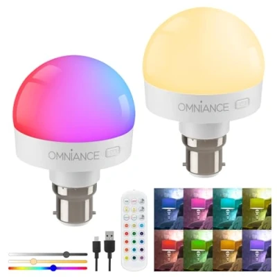 ✔ Rechargeable & Wireless LED Light – The Omniance rechargeable light source provides convenient, cordless lighting. A fast 3-hour charge delivers up to 12 to 20 hours of continuous illumination, making it an ideal lighting solution for any room. ✔ No Wiring Required – The magnetic wall sticker allows for quick and secure mounting under shelves, inside cupboards, or directly on walls. The E27, B22, and E14 adaptors convert standard lamps into wireless, battery-powered lights, allowing for flexible placement anywhere in your home. ✔ Remote-Controlled Lighting – Adjust brightness, change colours, and set timers (30/60/120 minutes) using the included remote control. Choose from warm white, daylight white, or vibrant RGB colours to match your mood and setting. ✔ Compact & Versatile – Designed for standalone use or pairing with compatible light fittings, this portable LED light source is perfect for bedside lamps, under-cabinet lighting, wardrobe illumination, or as an emergency light. Its lightweight, modern design allows for easy movement between rooms. ✔ Cordless Convenience – Perfect for reading, accent lighting, or converting mains-powered lamps into battery-powered fixtures, giving you stylish and practical illumination without the need for sockets or wiring., Weight: 0.2425084882 Pounds, Manufacturer: Auraglow