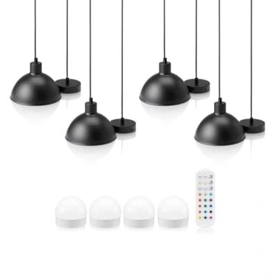 Auraglow Rechargeable Wireless Pendant Light with Remote Cordless, Battery Powered, Dimmable, Colour Changing (Black, 4 Lamps, Sources, 1 Remote)