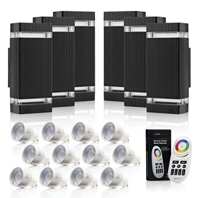Auraglow RF Remote Control Colour Changing LED Double Up & Down Outdoor Wall Light Black 6 Pack