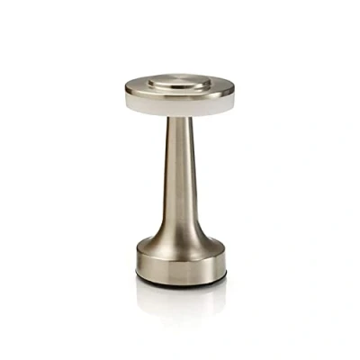 Auraglow Satin Nickel Rechargeable Touch Control Cordless LED Table Lamp Perfect for Bedside Tables, Hotels and Restaurants