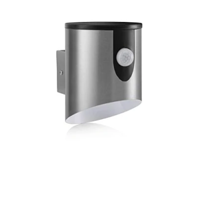 This stylish stainless-steel wall light with built in PIR motion sensor is the ideal security light for your home. The light automatically turns on when the PIR sensor detects movement from a heat source and the built-in daylight sensor ensures it only operates at night to save battery power. The light illuminates for 30 seconds after the last detection when in PIR mode or can be switched on constantly from the mode switch. Powered by 4 x C batteries (not included), so there is no complicated wiring and no expensive electrician costs. Last approx. 12,000 activations before the batteries need to be replaced. The energy efficient integrated LEDs produce 110lm at a 6000K colour temperature. Fixtures included. IP44 weatherproof rating. Dimensions: 14cm x 14cm x 10cm.