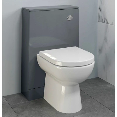 General description If you're looking for modern furniture for your bathroom, then this concealed cistern unit is an excellent choice that will bring style and sophistication to your space. The glossy grey finish and modern design effectively hide the cistern, making it a sleek addition to any bathroom. Please note that this is for the back to wall unit ONLY; the toilet and cistern are NOT included. Technical specifications Dimensions: 500mm (W) x 800mm (H) x 215mm (D) Finish: Grey gloss Type: Back to wall unit Guarantee: 10 years against manufacturing defects Installation Delivered flat packed for easy assembly Includes easy-to-follow instructions with numbered parts Usage Ideal for modern bathroom designs Perfect for smaller spaces such as en-suites and cloakrooms due to its reduced depth Smooth surface for easy cleaning Other information Unit only; no cistern parts, toilet pan, or seat included Available separately: toilet pan and concealed cistern