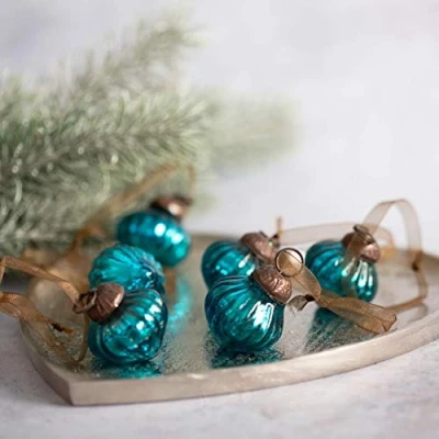 Aurora Christmas Set of 6 Glass Lantern Baubles, Turquoise, 1"
