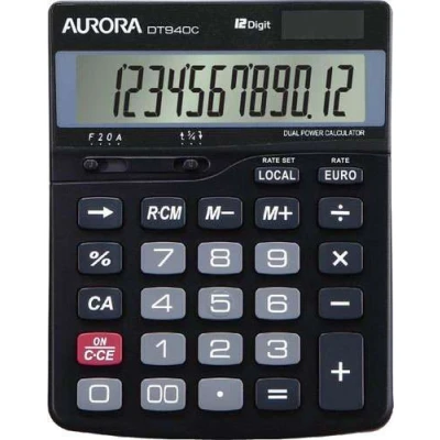 The Aurora DT940C is a large semi-desk sized general purpose calculator, which has an angled 12 digit LCD display to enable easy viewing. The calculator is designed for ease of use with large durable hard plastic keys, an extra-large addition key and a well-spaced keypad.Features include a decimal point selector, 'Add mode' for working with money, a roundup or down selector and handy backspace or delete key. There is also a currency conversion function that allows you to program and store a currency exchange rate and then easily convert between your local and chosen currency.