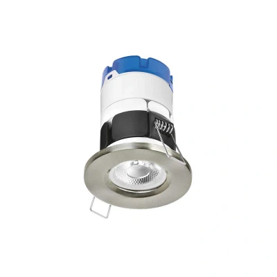 DownlightsAurora MPro Fire rated LED downlight in a satin nickel finish from Aurora Lighting.